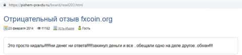 Вкладчики в шарашкину контору FX Coin оставляют многочисленные отзывы и предупреждения о том, что внесенные на депозит средства прочно оседают в карманах аферистов. Основная цель конторы мошенника – деньги вкладчиков. Человека, оставившего отрицательный отзыв на pishem-pravdu ru облапошили, как и тысячи других.