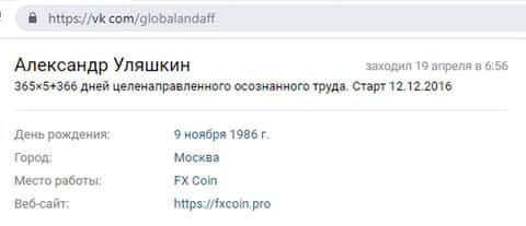 Софт ФХ Коин – проект Александра Уляшкина. По заявлению руководителя программы, он лишь предоставляет технологическую разработку быстрого биткоин-кошелька, и не является реальным брокером.