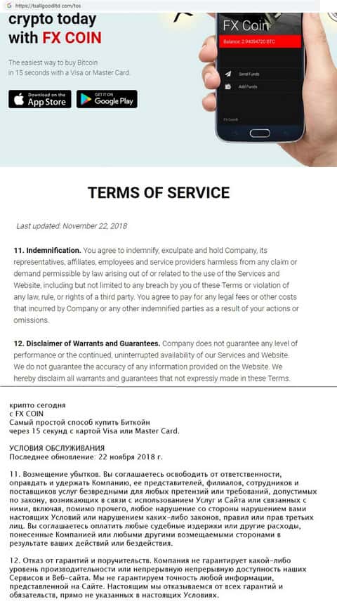 Также в этой бумаге прописаны и другие мошеннические пункты, типа, снятия ответственности с жуликов ФХ Коин и отсутствия всяких гарантий для клиента. Яснее некуда, что представляет из себя шайка-лейка – очередной лохотрон и кидалово для бедного юзера, сидящего в сети.
