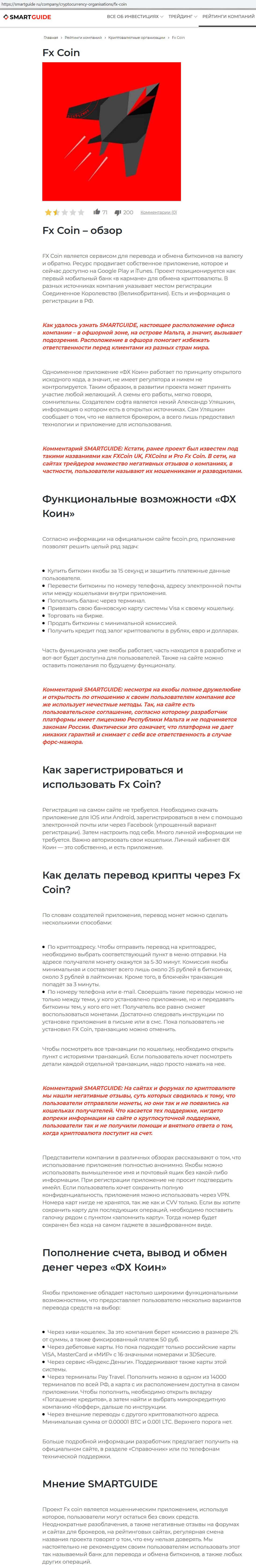 Статья о мошенниках ФхКоин Про на сайте SmartGuide Ru