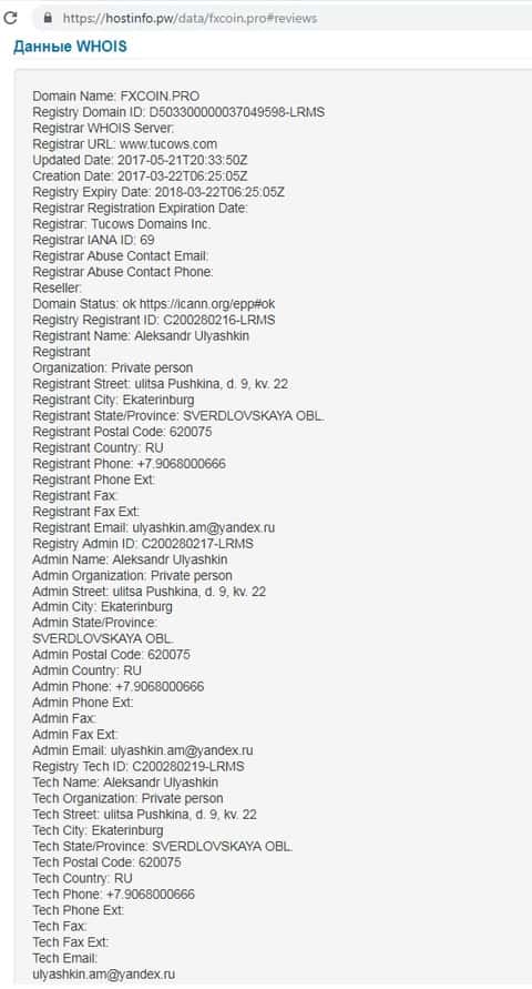 Все номера телефонов и адреса хайп-программы ФХ Коин тщательно скрыты, на их портале вообще и не слышали о таком разделе, как Контакты. Однако по отзывам клиентов и в сети удалось найти следующие данные мошенников: