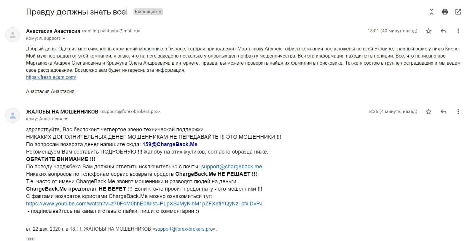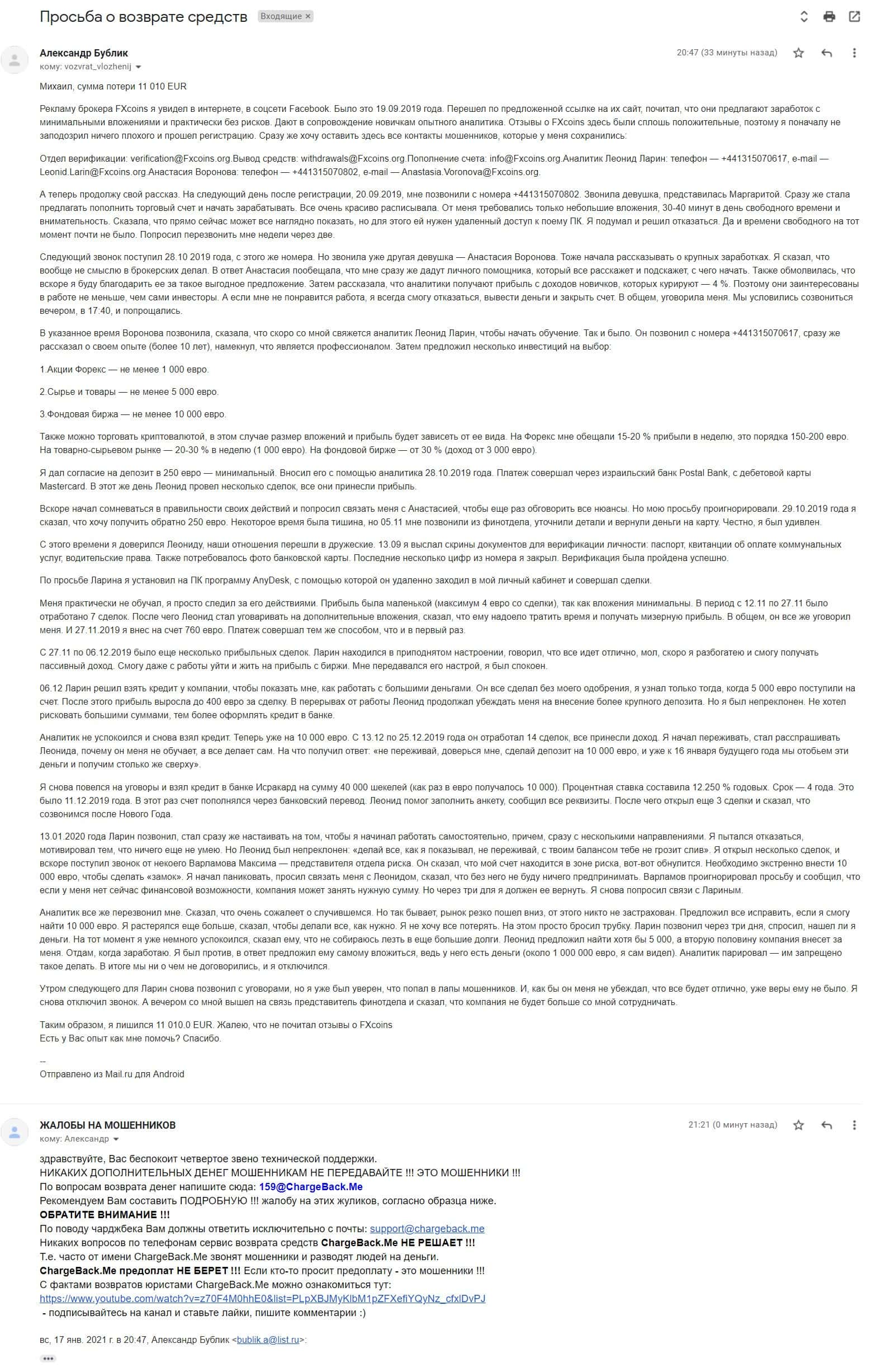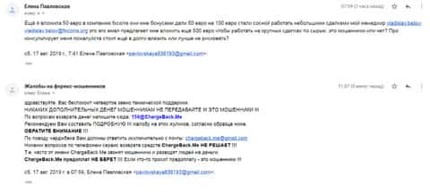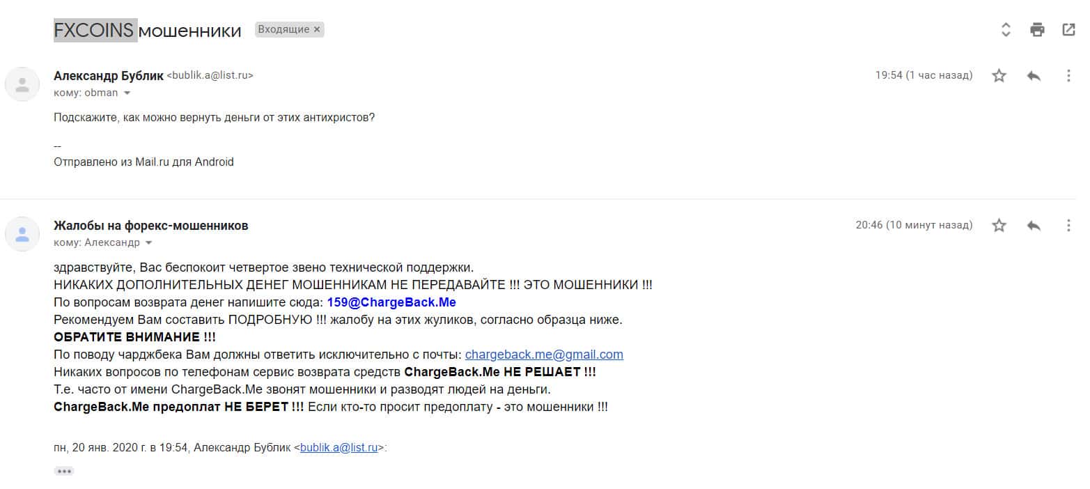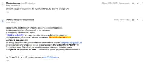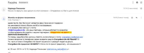 Письмо, поступившее от жертвы лохотронии FXCoins
