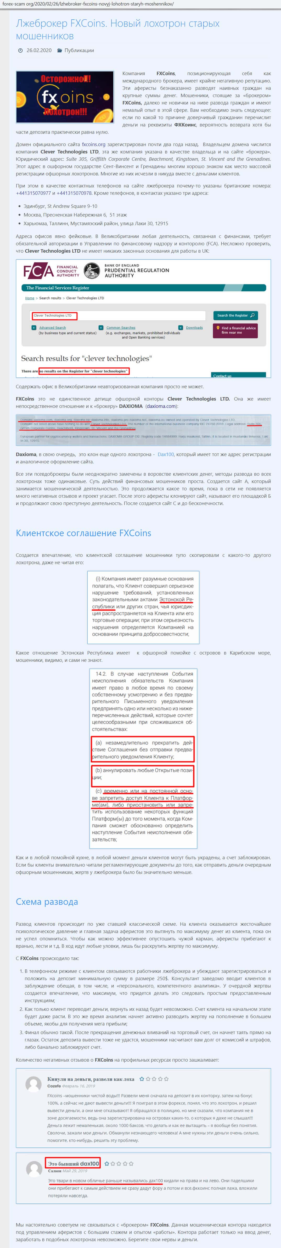 Разоблачение аферистов FXCoins на сайте Forex-Scam Org