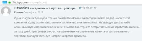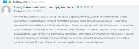 Жалоба на FXCoins от очередного пострадавшего интернет-пользователя