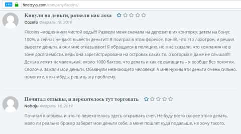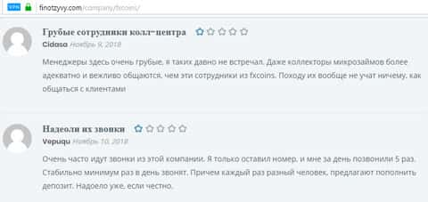 Несколько негативных отзывов об аферистах конторы ФХ Коинс