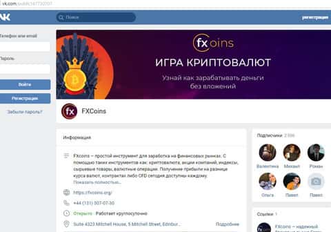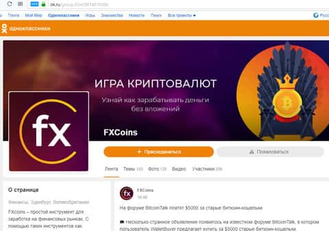 - Лохотрон FXCoins занимается поиском лохов в социальных сетях
