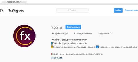 И куда же без страницы в Инстаграм. Шулера забрели даже сюда и выкроили себе местечко. Но не так страшна их деятельность, как 85 подписчиков. Куда не шло за несколько лет существования цифра в 100 раз больше, но не эти скудные результаты. Теперь мы точно понимаем, что контора FX Coins - настоящий лохотрон и занимается обворовыванием своих клиентов. Ни в коем случае не подписывайтесь на страницу instagram com/fxcoins