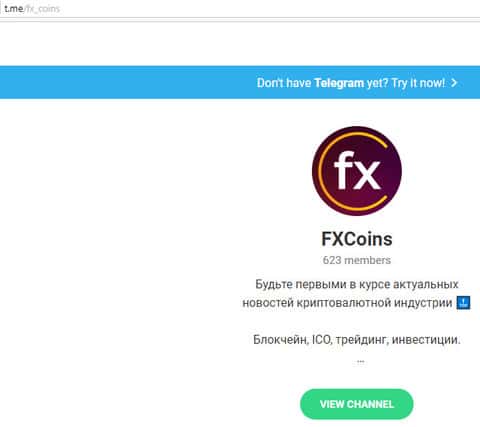 Еще одна очень популярная площадка для привлечения новичков к себе в логово - это группы-каналы в Телеграмм. Шулера ФХ Коинс насобирали всего-то 623 подписчика, что тоже показывают такие масштабы, ну точно не международного уровня. Если вам вдруг начнут добавляться из этой группы, то немедленно блокируйте канал и ставьте в черный список. Группа размещена под ссылкой t me/fx_coins