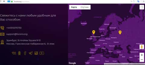 Информацию о кухне ФХ Коинс нам удалось на их официальном сайте, где расписано все довольно подробно. Как мы видим офисы находятся в России и в Шотландии, а вот сама регистрация была произведена в оффшорной зоне. А вот собственно и сами данные: