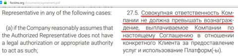 А в следующем разделе, шарлатаны ФХ Коинс уже начинают считать деньги и ограничивают компенсации клиенту, еще до того, как факт мошенничества с их стороны произошел. Здесь сказано, что совокупная ответственность Компании не должна превышать вознаграждение, выплачиваемое компании по настоящему соглашению в отношении конкретного Клиента. Этим они хотят сказать, что на них не заработаешь, и дело даже если раскрутить до реальных цифр компенсации, то этим пунктом все уровняется до минимальных значений.