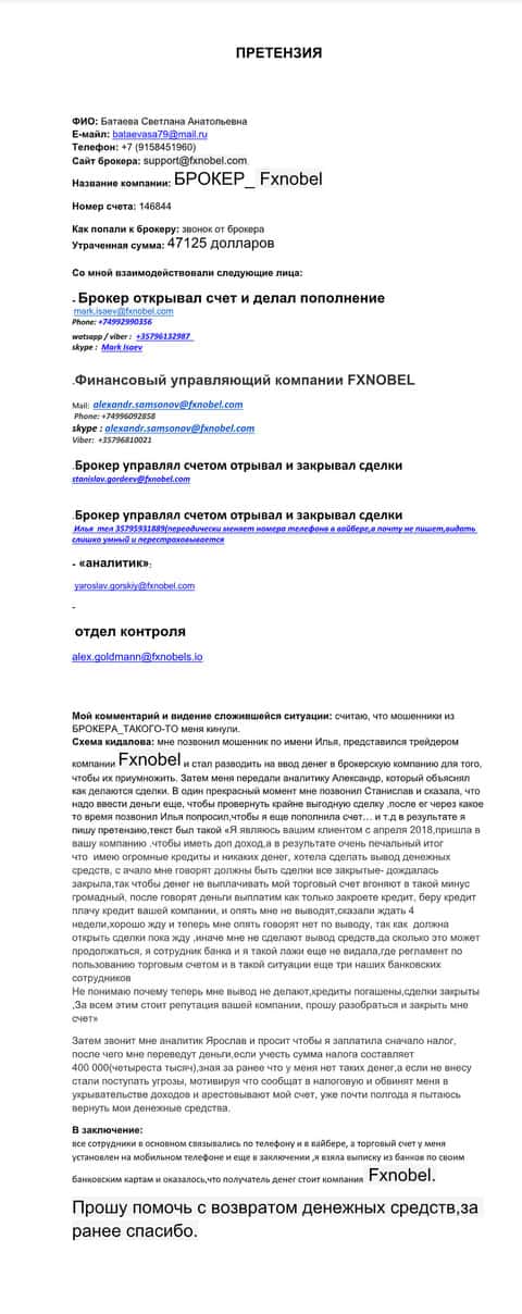 - Подробная жалоба на ФХ Нобел - клиент утратил 47 000 долларов