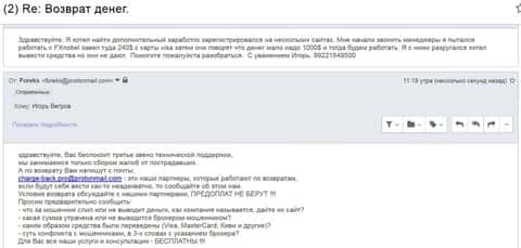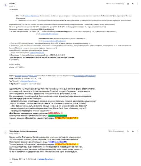 Аферисты FXNobel обворовала еще одну жертву из Литвы и выманила порядка 2000 евро. Жулики отказываются что-либо возвращать, так как нет веской причины даже это объяснить. Мало того, что они просят вложить еще и еще, надеясь на наивность своей жертвы. Теперь, чтобы сдвинуть ситуацию с мертвой точки, нужно написать на ресурс ChargeBack.Me где знают как это сделать.