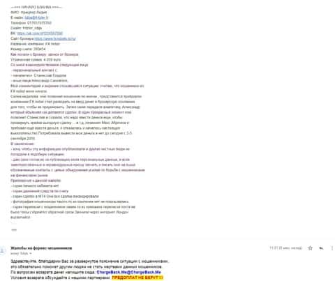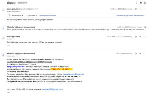 Мошенническая контора ФХ Нобель снова провела свою аферу по отношению к одному очень наивному клиенту. Аналитики смогли вытащить у клиента порядка 250 евро. Чтобы решить данный вопрос, пострадавшему придется написать все подробности в организацию ChargeBack.Me