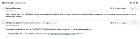 Первым идет письмо от пострадавшего клиента интернет-лохотрона FXNobel, у которого аферисты выманили 250 долларов, после чего пропали в неизвестном для него направлении. В этом случае произошел так называемый обычный кидок на относительно небольшую сумму.