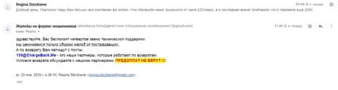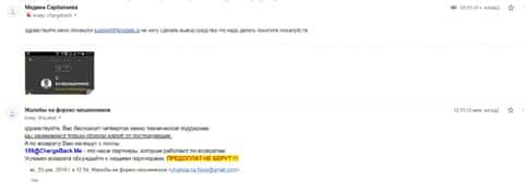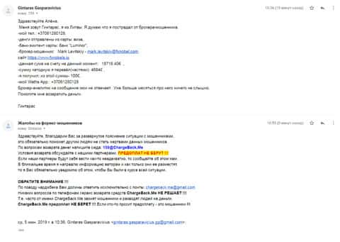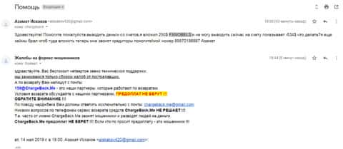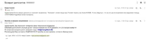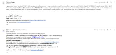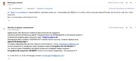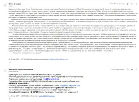 После того, как женщина передала все данные, в компанию ChargeBack.Me которая пообещала помочь вернуть украденные деньги, она написала нам коротенькое письмо. В нем жертва рассказала как лохотрон ФХ Нобелс своровал 250 долларов и теперь не желает возвращать ни копейки. Что только аферисты не придумывают, лишь бы уйти от темы вывода.