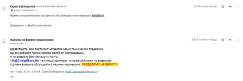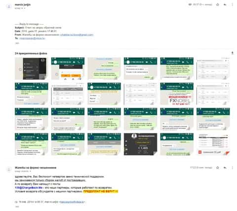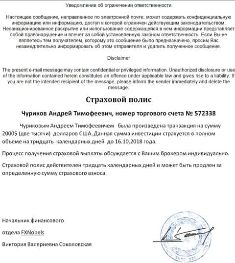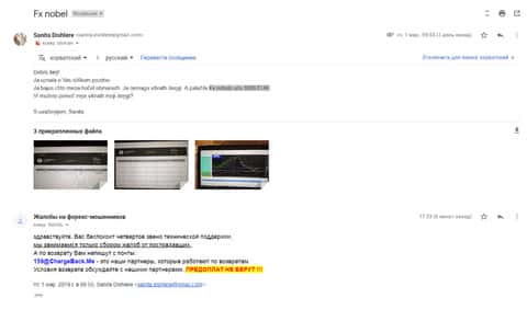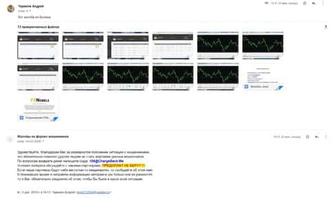 Человек, вместе со своим письмом прислал множество доказательств того, что брокерская контора FXNobels обманула его.
