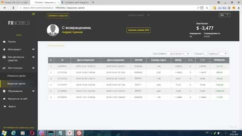 Дальше мы можем увидеть подробности слива счета клиента аналитиками брокерской конторы ФХ Нобелс от начала и до конца.