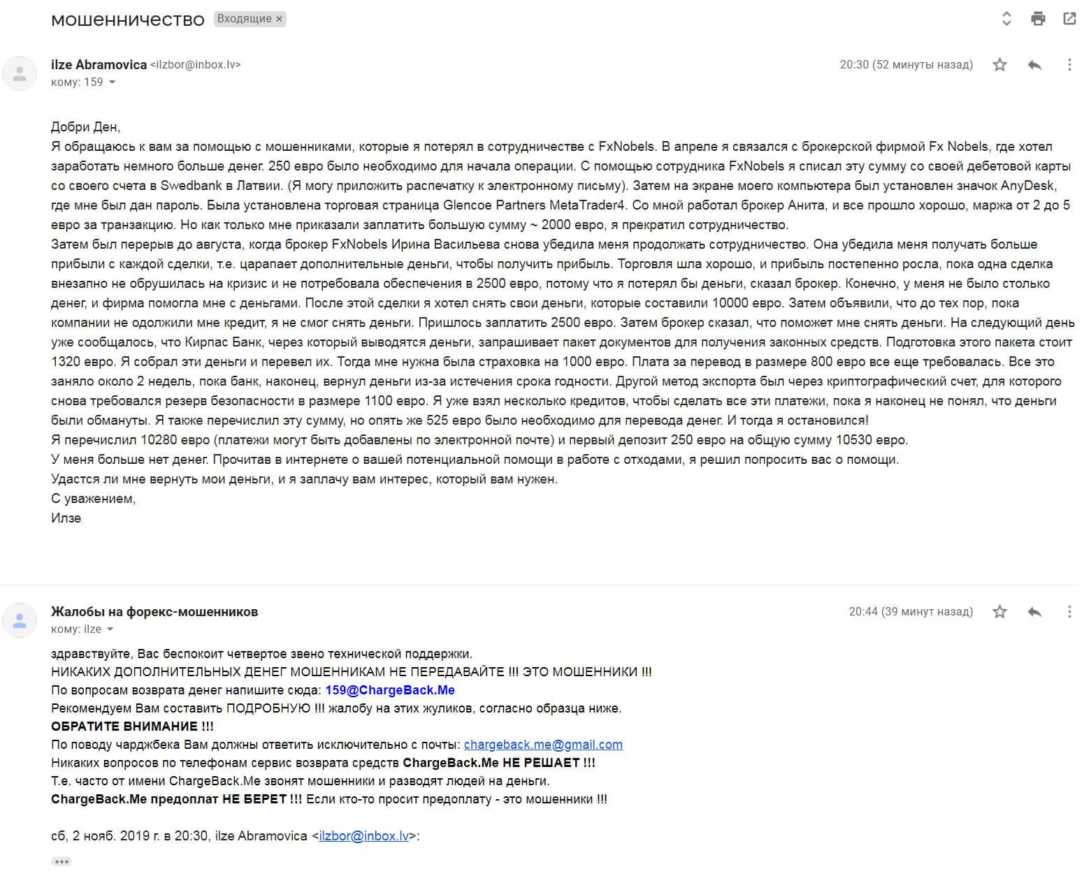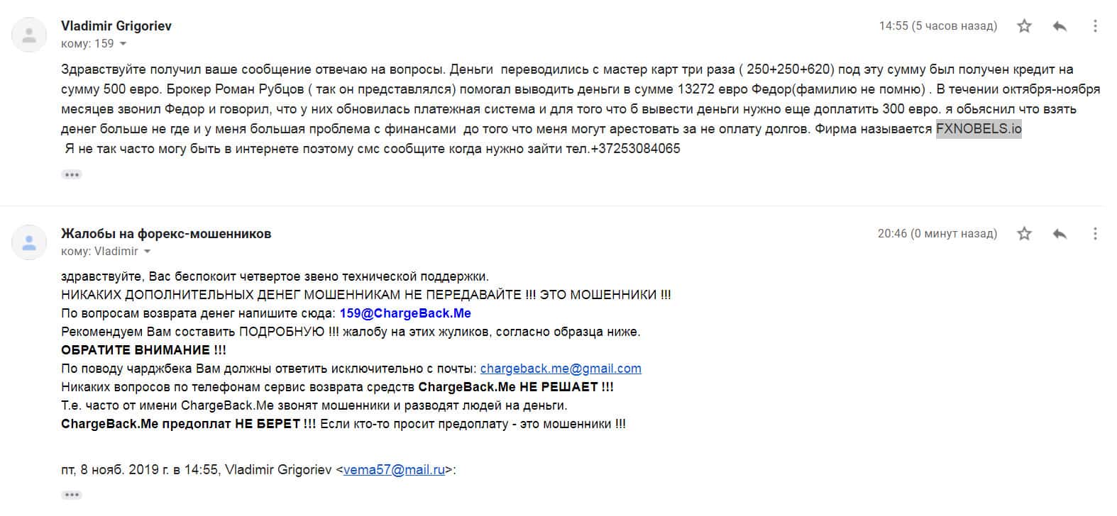 - Очередной обманутый аферистами FXNobels пользователь всемирной сети