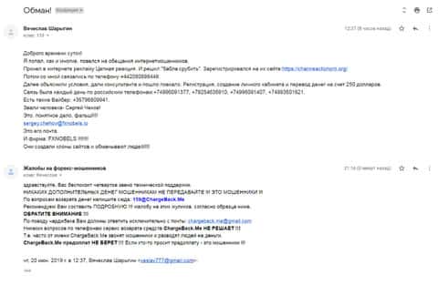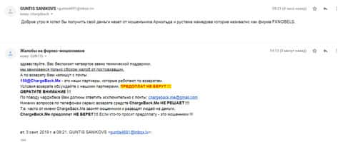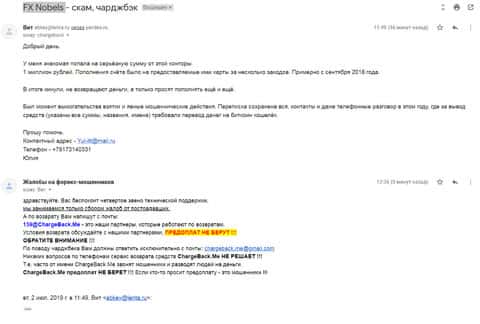 Самый насущный вопрос, который приходит к нам в редакцию это "как вывести деньги от мошенников FXNobels?". Шарлатаны этой конторы лестно входят в доверие к своим клиентам, которых в последующей обработке, делают своими жертвами. Таким образом конторы подобного рода и живут, ни в чем себе не отказывая. Есть одна управа на жуликов, если только человек переводил деньги через банковские платежи, можно воспользоваться услугой чарджбека.