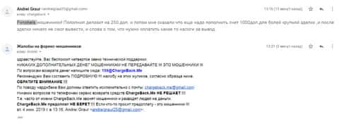 Еще один человек утверждает, что контора ФХ Нобелс - это шарашкина кухня, которая обворовывает людей. И не спроста он это говорит, так как мошенники украли у него 250 долларов. Чтобы вернуть деньги ему потребовалось написать все подробно в организацию ChargeBack.Me где возможно помогут.