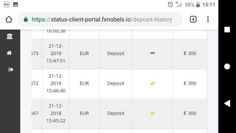 Как мы видим, все таки два раза депозит по 300 евро прошел на счет, открытый в дилинговой конторе ФХ Нобелс.