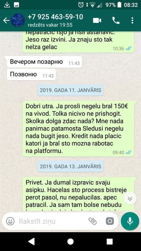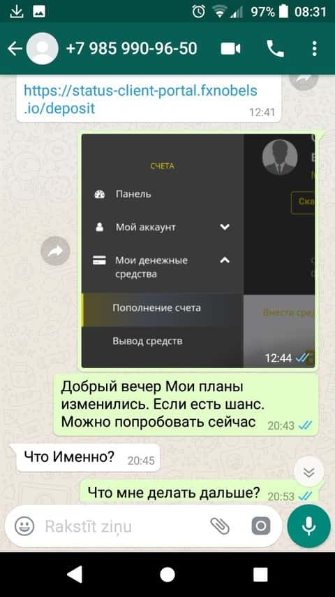 Все же клиенту удалось достучаться до мошенников ФХ Нобельс и закинуть 1450 евро.