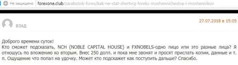В отзывах мы нашли одну интересную информацию, которую один клиент конторы FXNobels оставил на сайте мнений о мошеннических кухнях. Он связывает компанию Noble Capital House с кухней FXNobels и так как во вторую уже он вложил 250 долларов, то боится, что эти окажутся такими же жульбанами. К сожалению это так и есть!