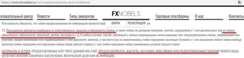 Аферисты FXNobels настолько наглые, что они еще предоставляют свои услуги как есть, без всяких гарантий, а также обязывают клиента освободить от каких-либо долгов, претензий и расходов. То есть вдруг контора потеряет деньги, то все повесят на бедного клиента.