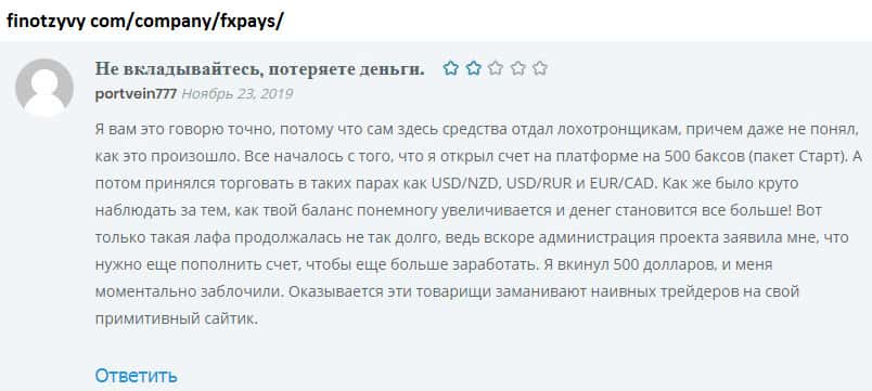 - Трейдер вложился и потерял 1000$ на лохотроне FXPays