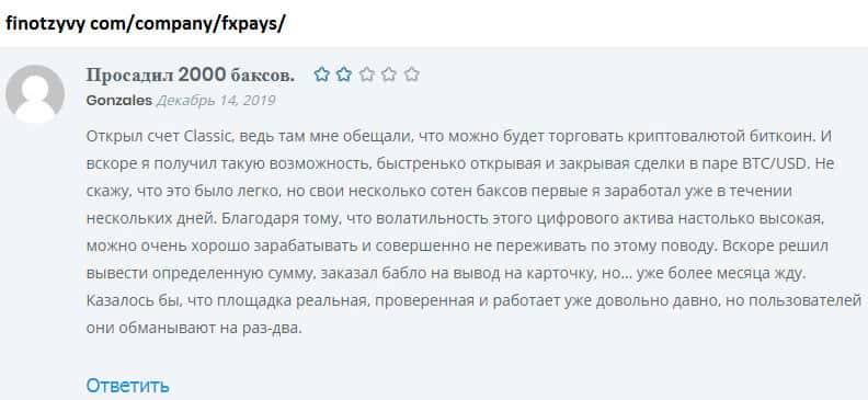Трейдер вложился и потерял 1000$ на лохотроне FXPays