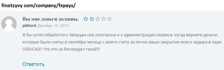 - Аферисты FXPays не исполняют ордера и на это наживаются