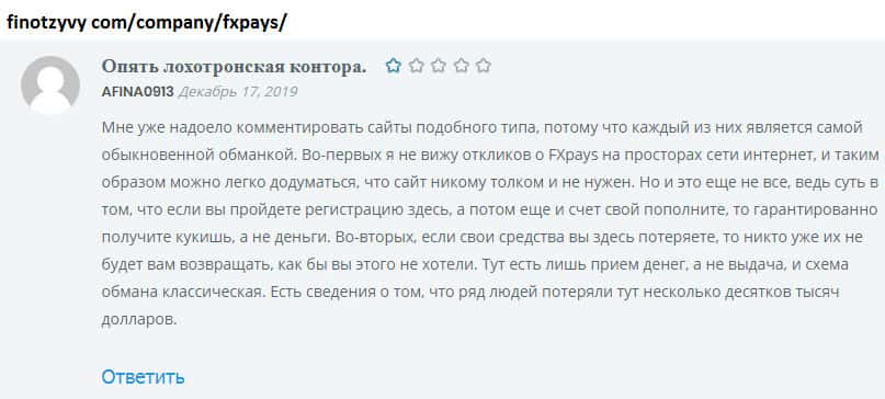 Подробный обзор сайта жуликов FXPays