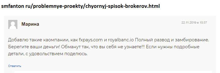 - Жалоба на FX Pays и Роял Банк Ио - клиент лишился 14 000 евро
