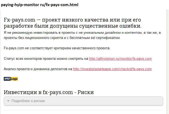- Подробный обзор сайта жуликов FXPays