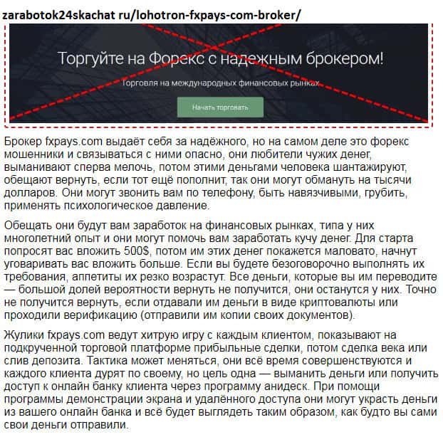 - Жулики FXPays разводит новичков в два счета