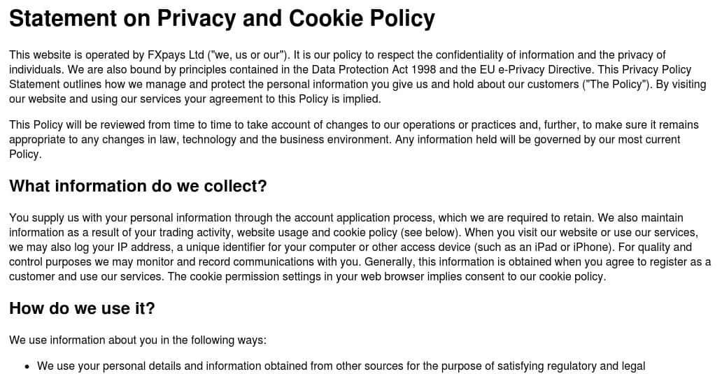 - Что можно сказать о политике конфиденциальности ФХ Пайс?