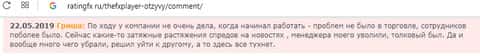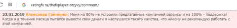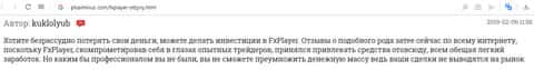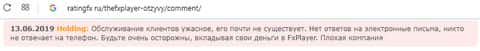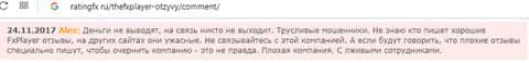 Следующий отзыв написан человеком, которого не устроили не предлагаемые сервисы компанией The FX Player, а также служба поддержки. Как только он пытался вывести деньги из этого лохотрона, то со стороны сотрудников наслушался такого хамства, что даже не пожалел что ушел оттуда.