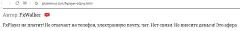 В данном случае интернет-пользователь рассказал всю правду о дилинговой конторе ФХ Плеер, которая ворует в открытую у своих наивных клиентов. Жулики блокируют все попытки трейдеров вывести деньги, а помимо этого, еще и не отвечают на телефон и электронную почту.