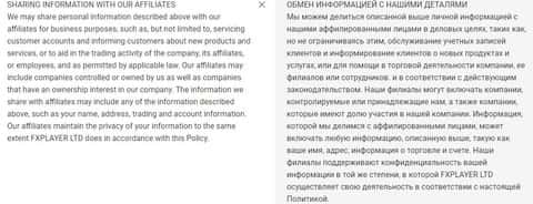 В документе под названием Политика конфиденциальности сказана одна вещь, которая заставляет задуматься - работать с жуликами The FX Player или нет. Аферисты указывают в данном документе, что они имеют право делиться личной информацией с третьими лицами, правда, когда данные перейдут к ним, там их ответственность уже заканчивается.