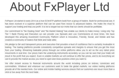 Интернет-ресурс брокерской конторы ФХ Плеер рассчитан на лоха, который не смыслет в трейдинге вообще. Жулики, скорее-всего привлекли студентов в создании из сайта, так как все сделано с помощью шаблонов. Малоинформативность и дизайн больше склоняет данного брокера к очередной форекс-шараги.
