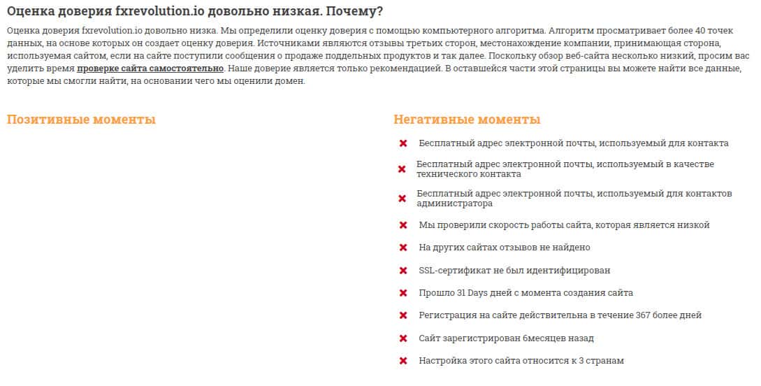 Разбор на доверие к домену мошеннического сайта FXRevolution io от сервиса