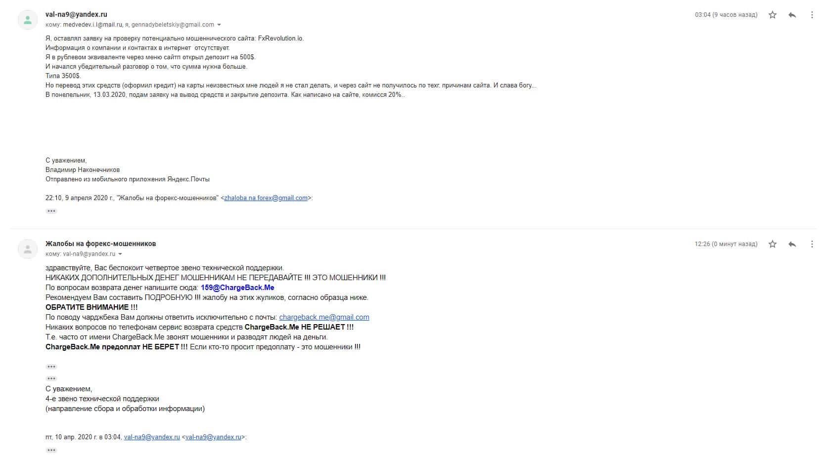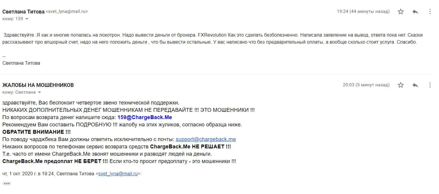 - адрес электронной почты мошеннической конторы ФХ Революшин compliance.ru@fxrevolution io
