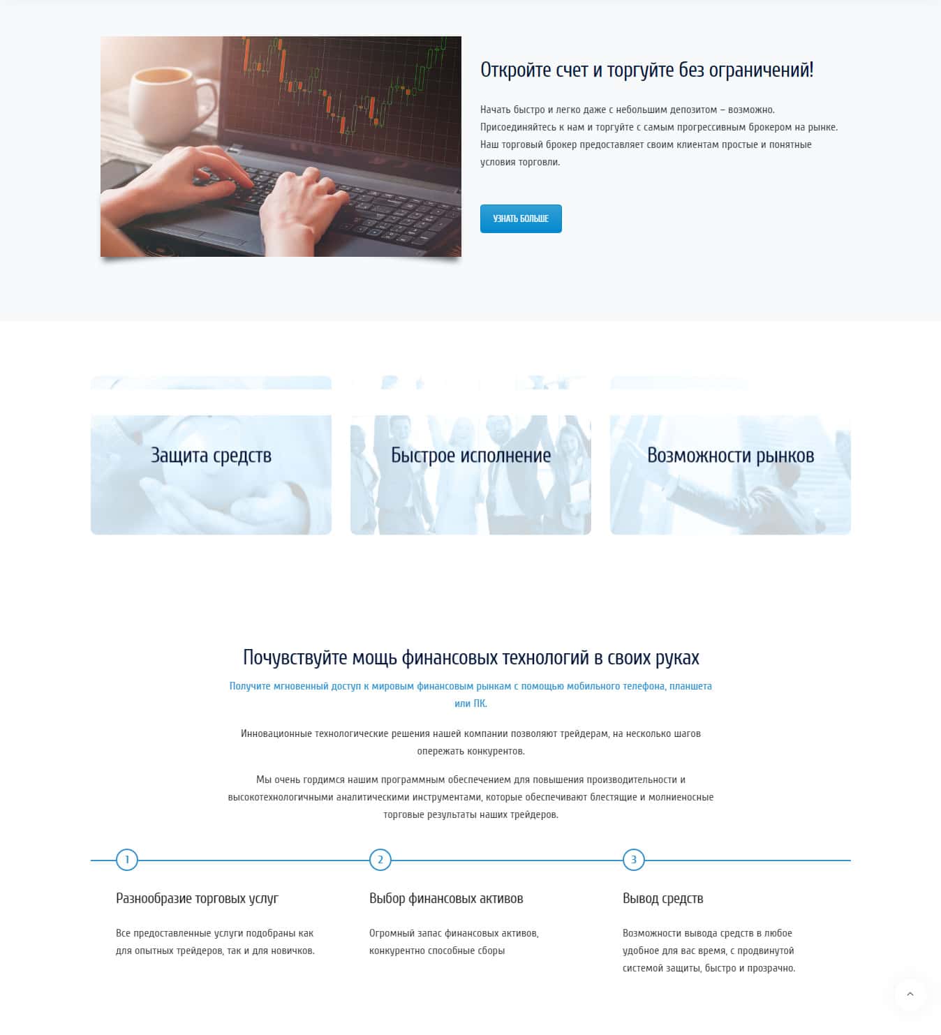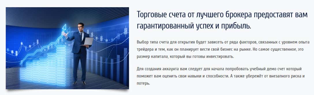 Далее, мошенническая контора предлагает Вам открыть счёт и торговать без ограничений на их платформе. Так как нам всем достоверно известно, что мошенническая контора скрывает о себе информацию в сети, то и не стоит им доверять. Кроме всего выше услышанного контора предлагает Вам "защиту счёта" и "быстрое исполнение", что, как можно понять - замануха.