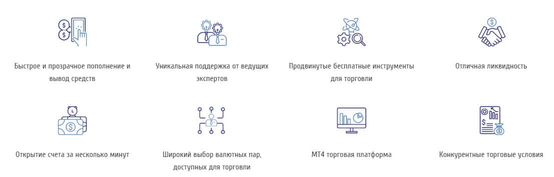 Мошенническая контора предлагает большое количество возможностей и функций, но не для того, чтобы Вы зарабатывали денежные суммы, а для того, чтобы больше разводить людей на это. Псевдоброкер под названием ФХ Революшин предлагает: торговлю на демо счёте, чтобы попробовать себя, скальпинг, хеджирование, одинаковое качество исполнения для всех счетов.