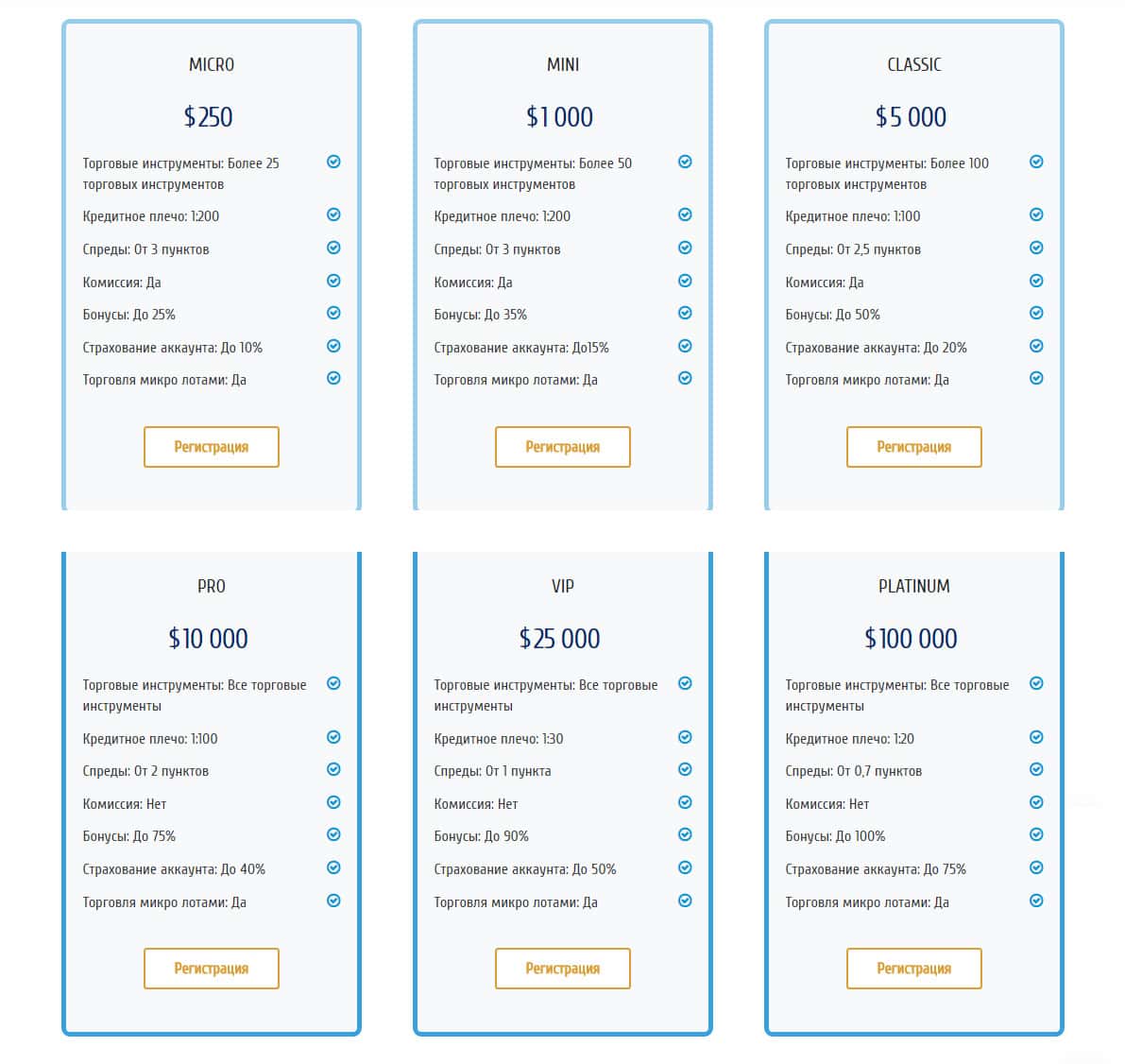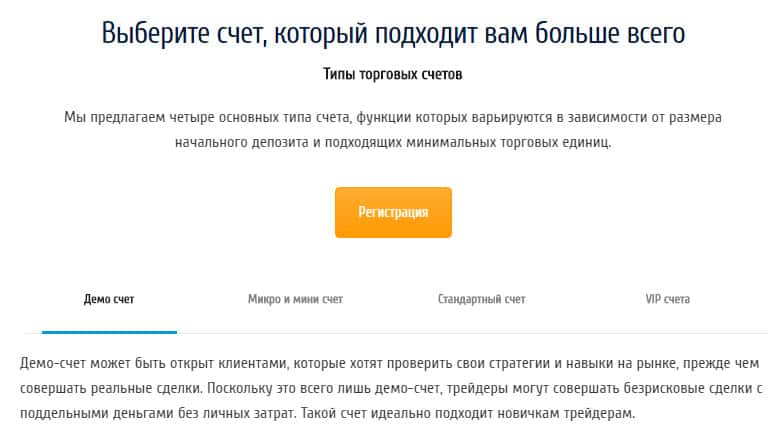 На официальном сайте мошеннической конторы ФХ Революшин есть некоторая более подробная информация о типах счетов, которые они предоставляют. А предоставляют они: демо счёт, на котором Вы можете торговать без утрат средств, микро и мини счета, где потери, по факту, минимальные, Стандартный счет и ВИП счёт, на которых потери будут куда больше.