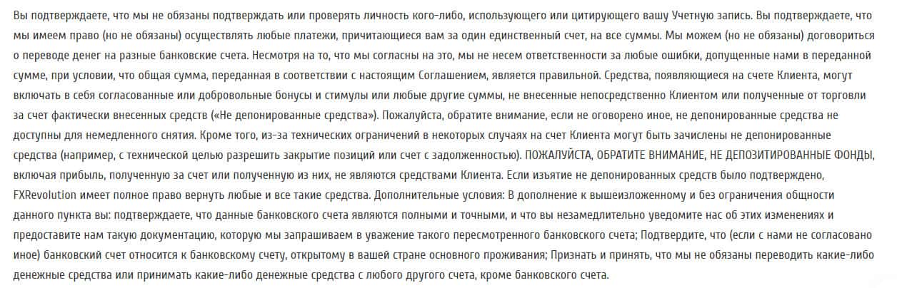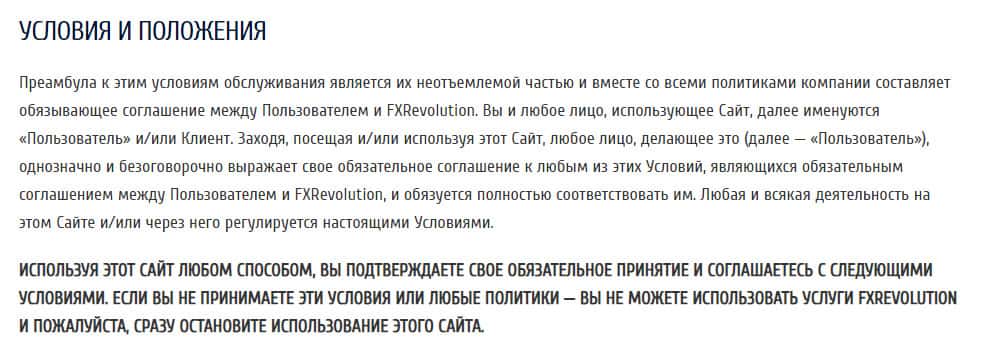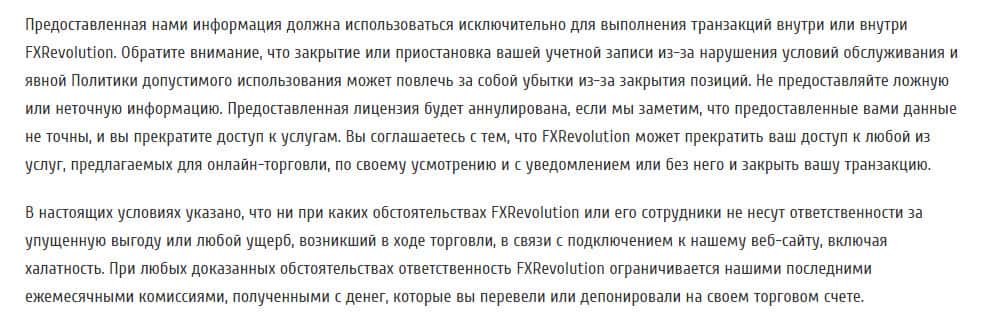 Разбор на договор с пользователем на официальном сайте конторы FXRevolution io