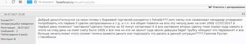- Форекс-ресурс высказался по поводу скам конторы ФХ Трейд 777