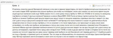 Следующий отзыв был оставлен человеком, который тоже повелся на уговоры аферистов FX Trade 777. Мошенники уломали его на 300 долларов, а после того как прибыль росла, он вкинул еще почти 2000 долларов. После этого аналитики открыли несколько сделок и случилась беда - пропали деньги со счета. Жулье списало все на хакерскую атаку и предложили купить за 1000 долларов страховку, чтобы восстановить счет. Он повелся и на этот раз и больше ничего не получил. Имена аферистов: Виктор и Елизавета.