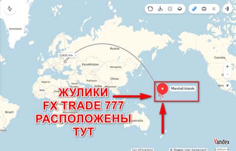 Согласно информации, которая осталась о конторе FX Trade 777 нам удалось найти данные, что они были зарегистрированы на Маршалловых островах. Теперь понятно, почему они с такой легкостью смогли унести деньги клиентов и никто их не наказал. Это живой пример, почему не стоит связываться с брокерами, у которых регистрация находится в оффшорной зоне.