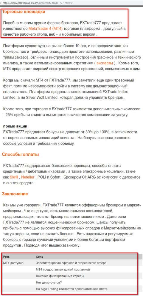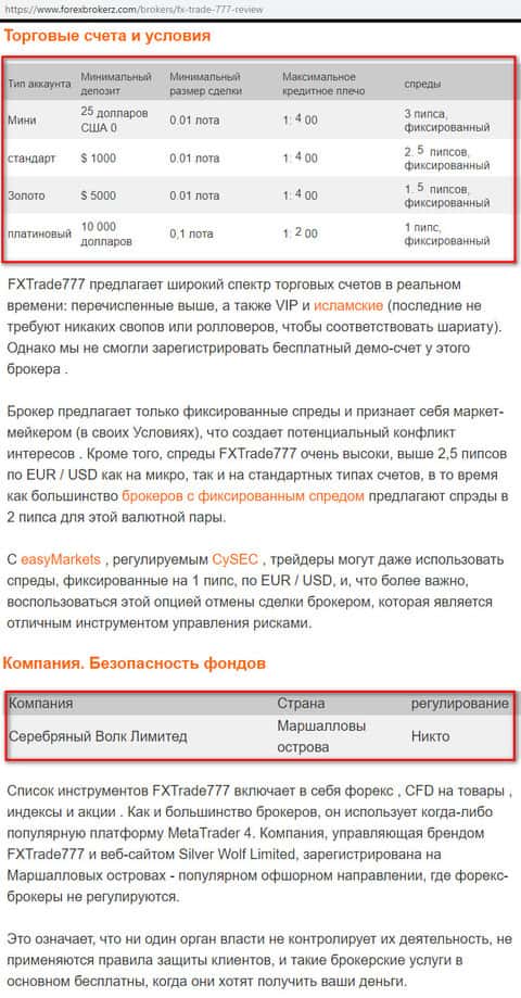 - Краткая информация о конторе ФХ Трейд 777 на основе статьи forexbrokerz com